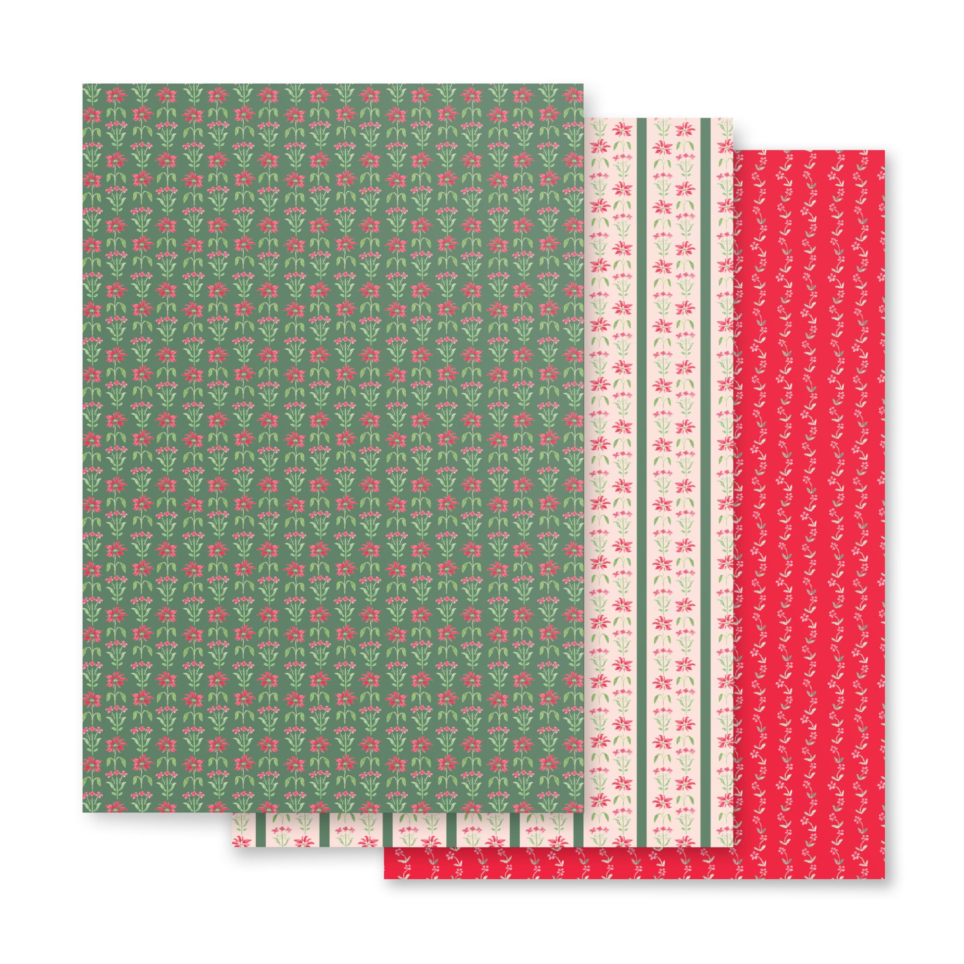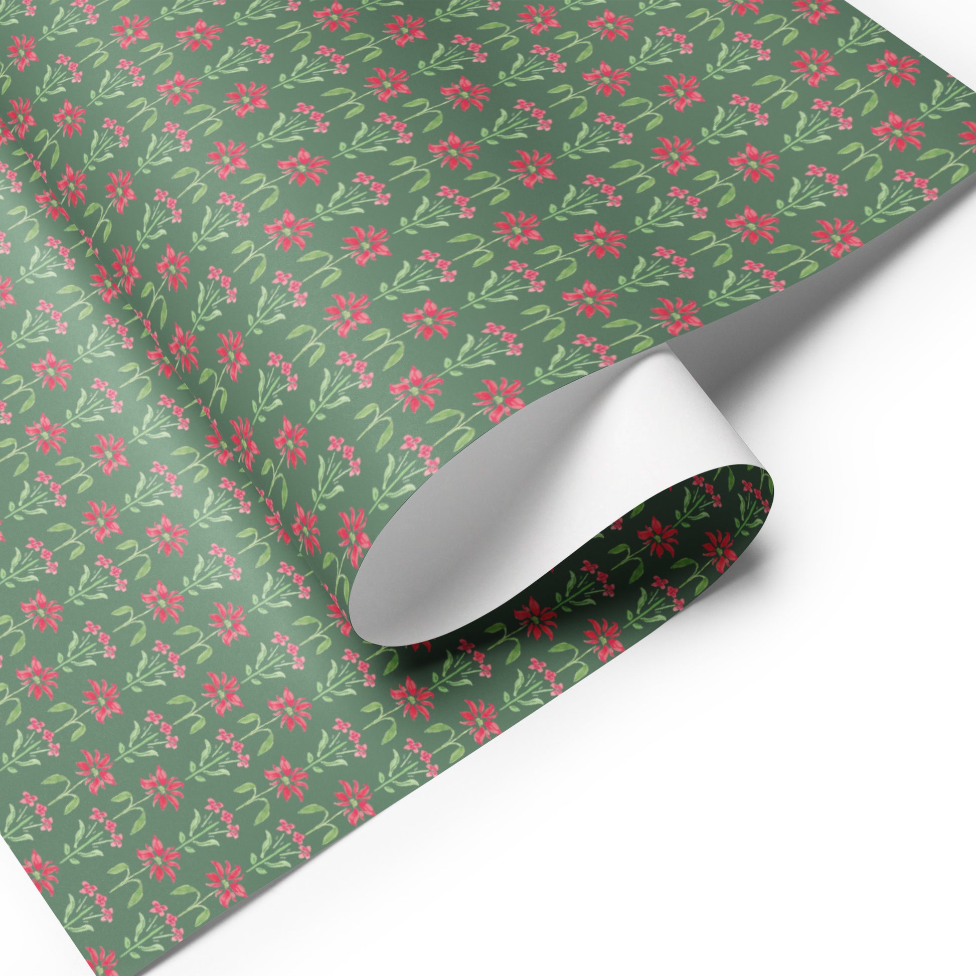 Block print-inspired design featuring festive poinsettias! Wrapping paper is printed to order as a set of 3 sheets. Sheet sizes are 28.75″ × 19.75″, printed on 70# uncoated text matte finish paper. Wrapping paper will ship rolled up in a tube for safe shipping. Wrapping paper will ship separately if you're also purchasing other items from this site.
